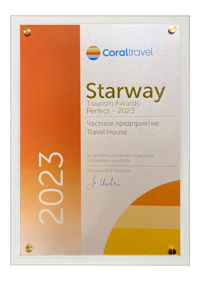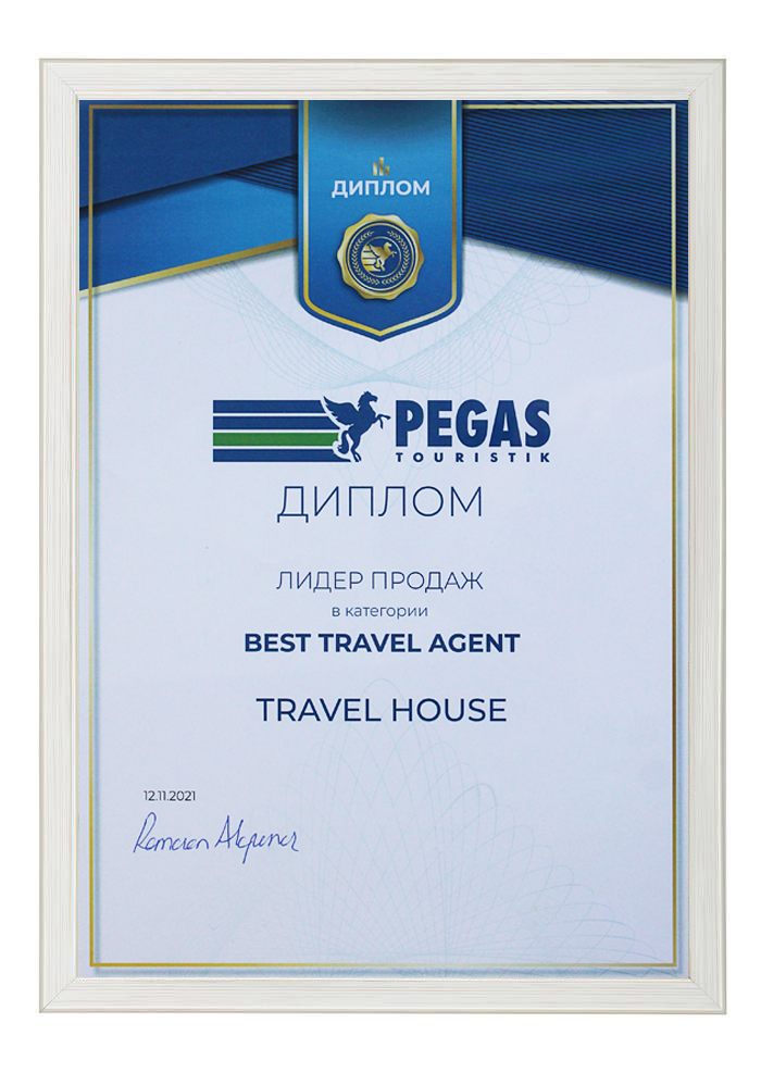 Сертификат соответствия № BY/112 04.03. 071.01 00109 выдан ГУ «Национальное агентство по туризму» Министерства спорта и туризма Республики Беларусь. Компания Travel House прошла добровольную сертификацию услуг. Ежегодно аудиторы ГУ «Национальное агентство по туризму» проверяют офисы продаж, уровень квалификации специалистов компании, внутреннюю документацию, договоры оказания туристических услуг, стандарты работы и подтверждают соответствие услуг компании актуальным требованиям Закона о туризме и другому законодательству Республики Беларусь.